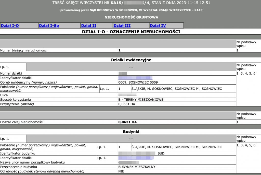 I. Dział I-O – „Oznaczenie nieruchomości”